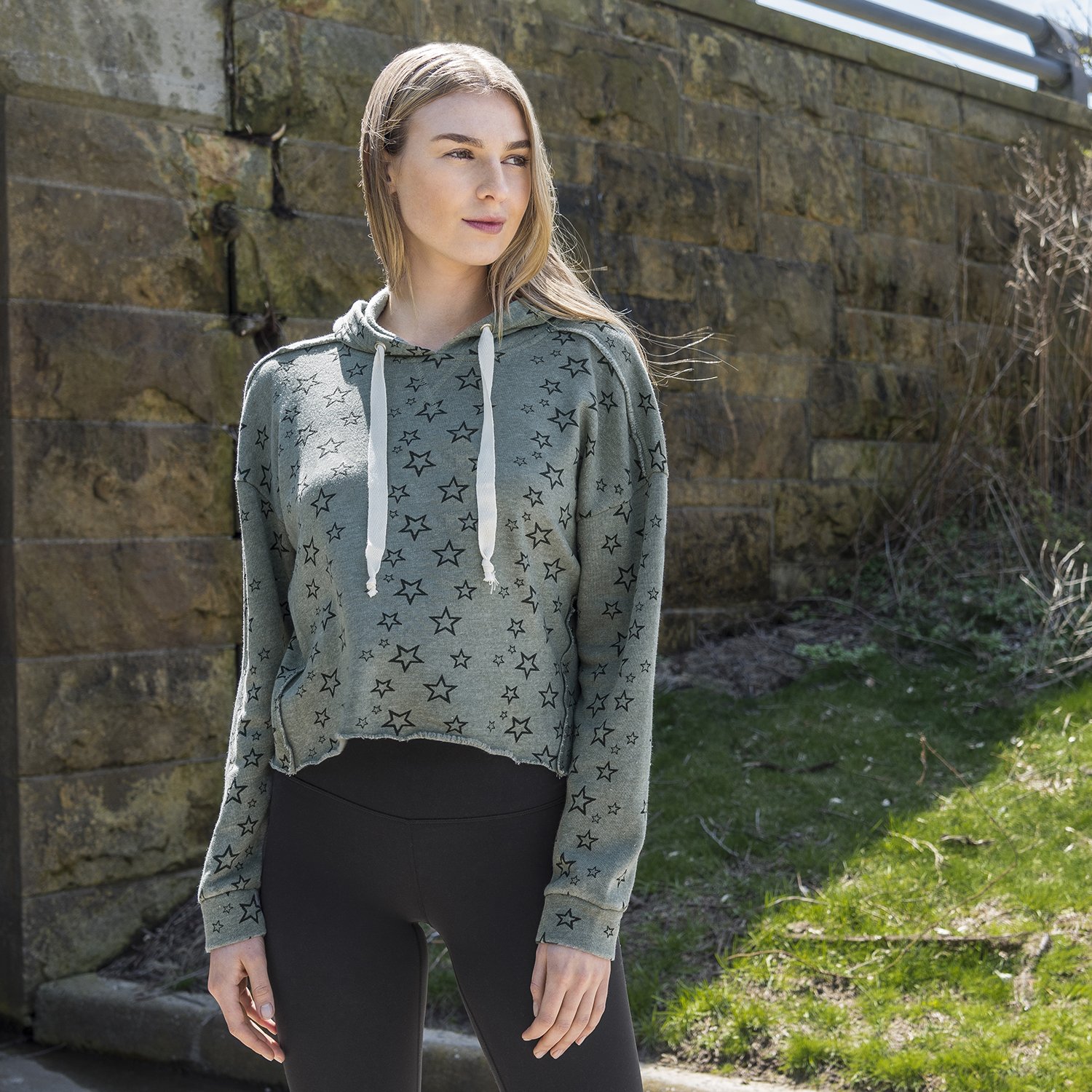 MV Sports; Starry Cropped Hooded Sweatshirt